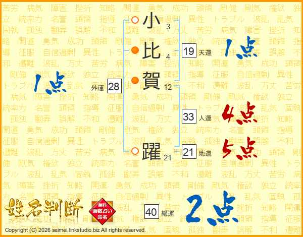 小比賀躍さんの人運は33画の4点!