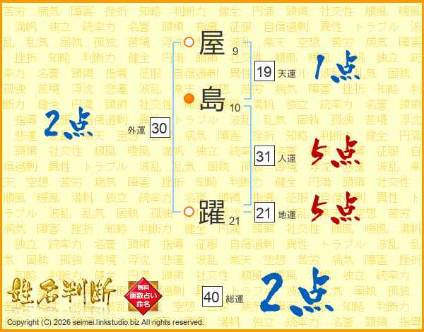 屋島躍さんの人運は31画の5点!