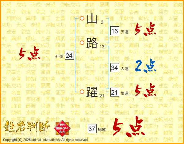 山路躍さんの総運は37画の5点!