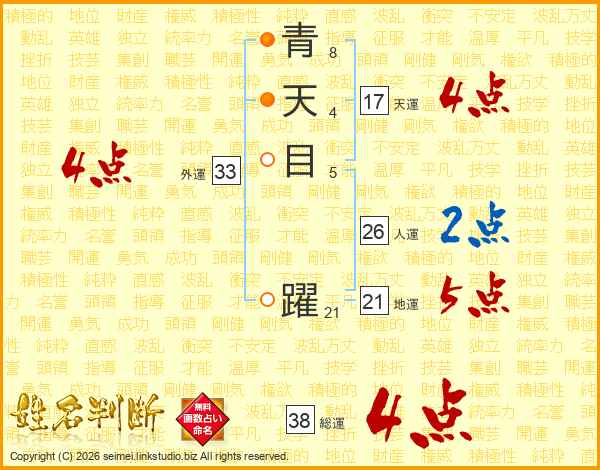 青天目躍さんの総運は38画の4点!