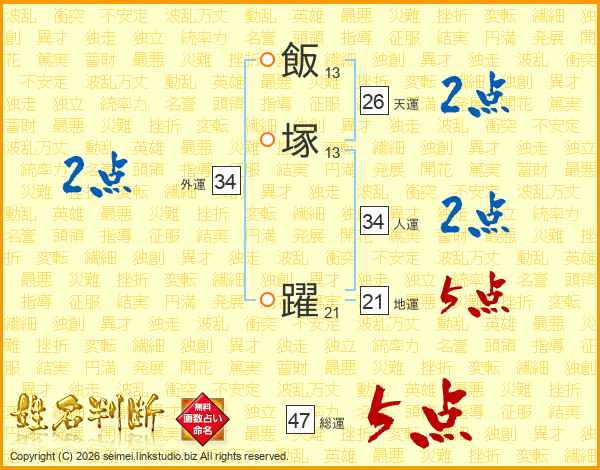 飯塚躍さんの総運は47画の5点!
