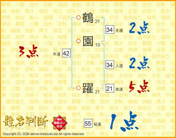 鶴園躍さんの総運は55画の1点!