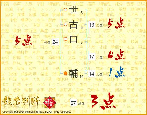 世古口輔さんの総運は27画の3点!