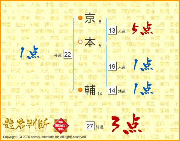 京本輔さんの天運は13画の5点!