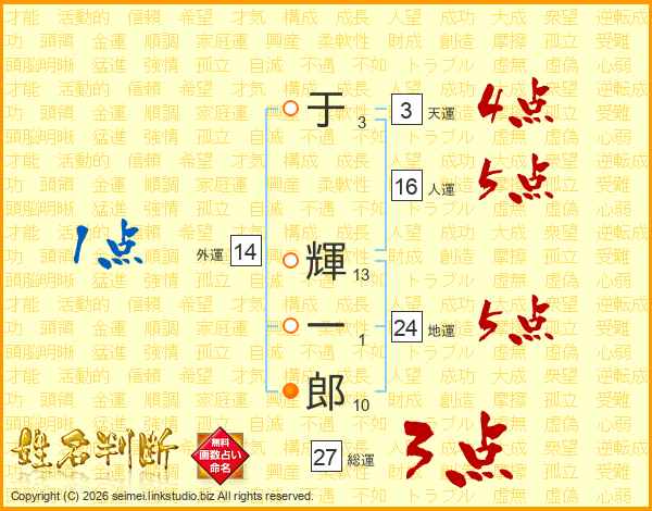 于輝一郎さんの総運は27画の3点!