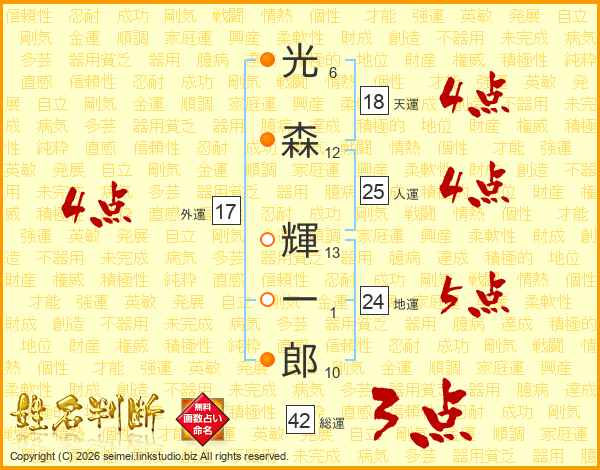 光森輝一郎さんの天運は18画の4点!