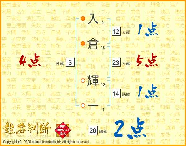入倉輝一さんの人運は23画の5点!