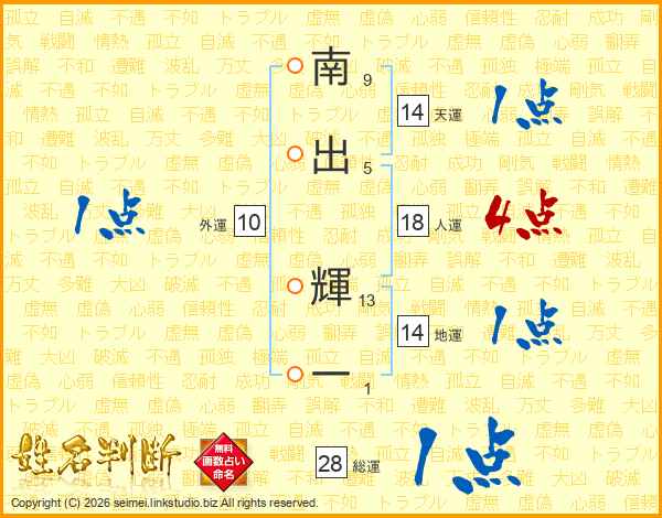 南出輝一さんの天運は14画の1点!