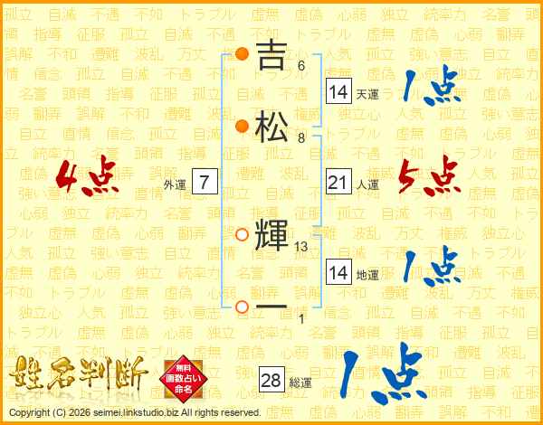吉松輝一さんの天運は14画の1点!