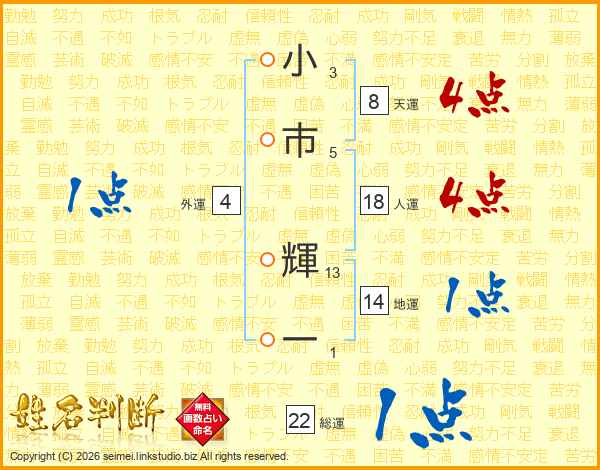 小市輝一さんの総運は22画の1点!