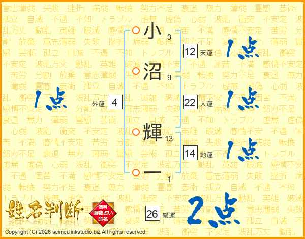 小沼輝一さんの総運は26画の2点!