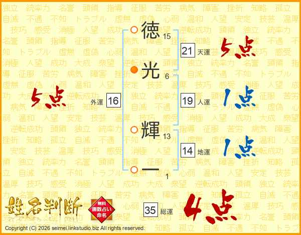 徳光輝一さんの総運は35画の4点!