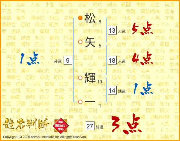 松矢輝一さんの天運は13画の5点!