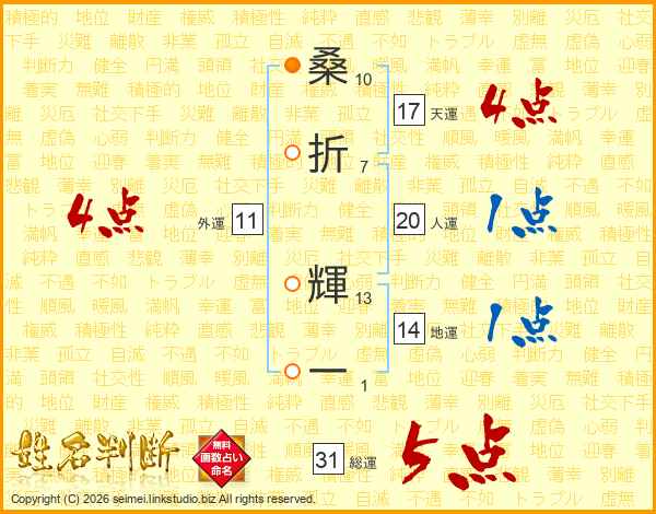 桑折輝一さんの総運は31画の5点!