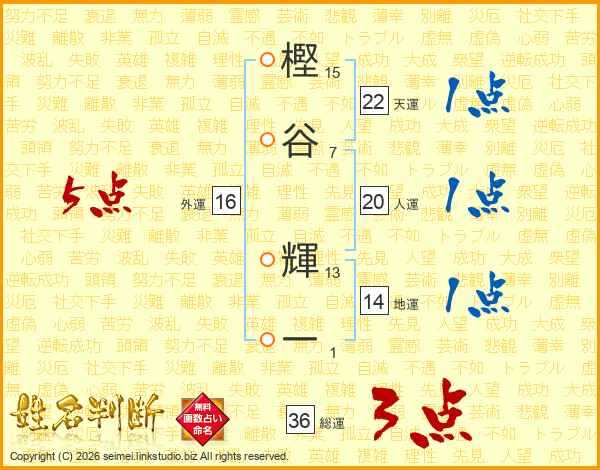 樫谷輝一さんの総運は36画の3点!