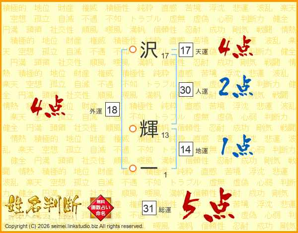 沢輝一さんの総運は31画の5点!