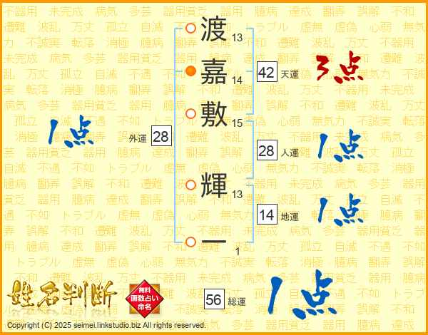 渡嘉敷輝一さんの総運は56画の1点!