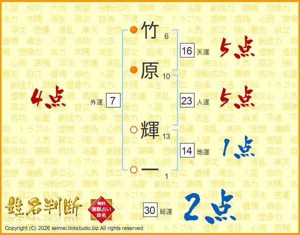 竹原輝一さんの総運は30画の2点!