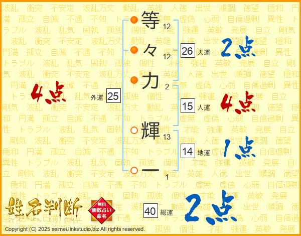 等(12画)々(12画)力(2画) 輝(13画)一(1画)