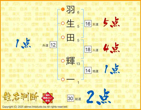 羽生田輝一さんの総運は30画の2点!
