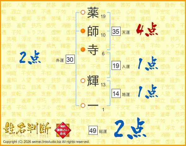 薬師寺輝一さんの総運は49画の2点!