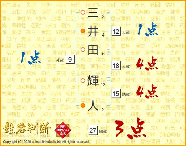 三井田輝人さんの総運は27画の3点!