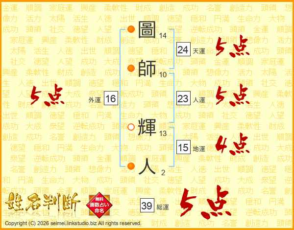 圖師輝人さんの総運は39画の5点!