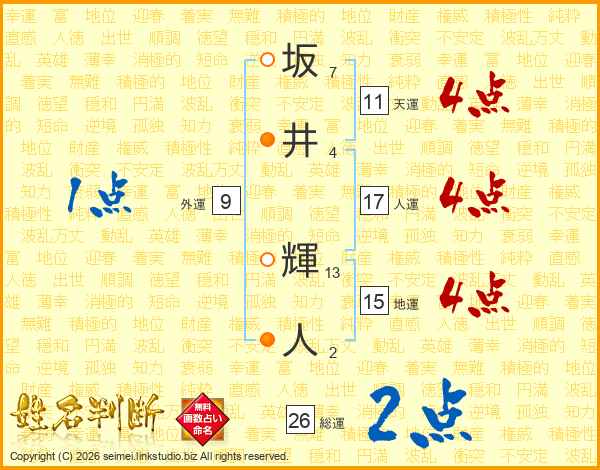 坂井輝人さんの天運は11画の4点!