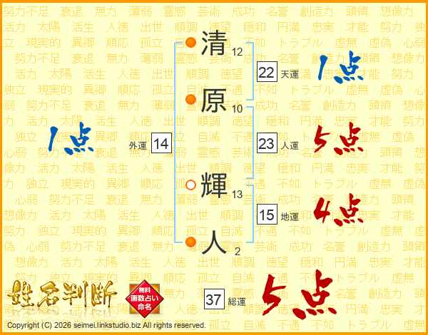 清原輝人さんの総運は37画の5点!