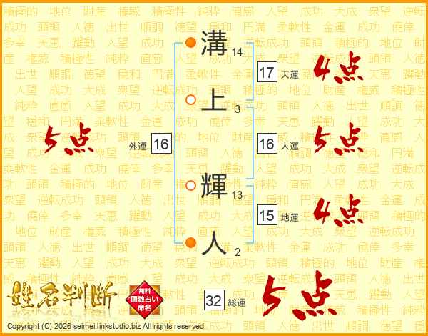 溝上輝人さんの総運は32画の5点!