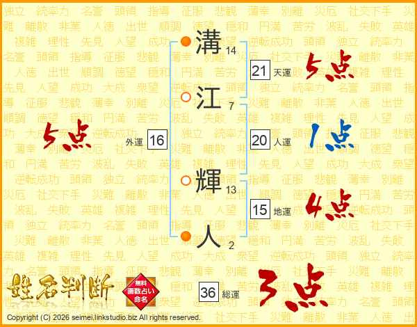 溝江輝人さんの天運は21画の5点!