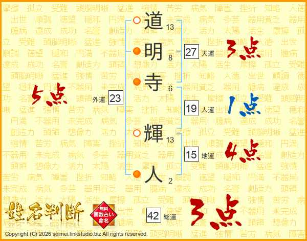 道明寺輝人さんの総運は42画の3点!