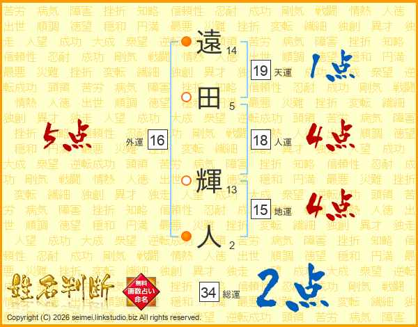 遠田輝人さんの天運は19画の1点!