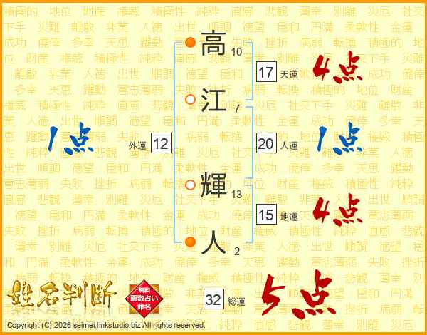 高江輝人さんの総運は32画の5点!