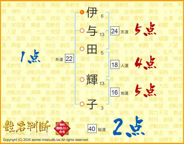 伊与田輝子さんの総運は40画の2点!