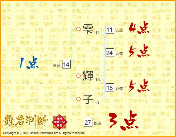 雫輝子さんの総運は27画の3点!