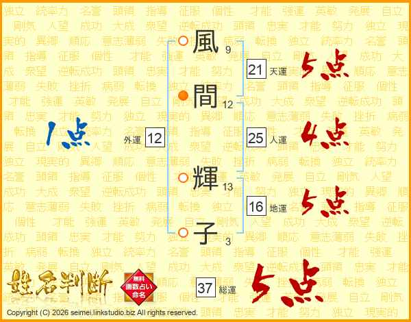 風間輝子さんの総運は37画の5点!