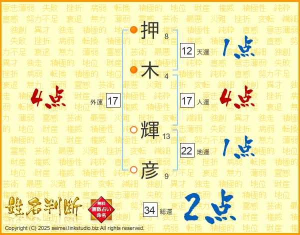 押木輝彦さんの総運は34画の2点!