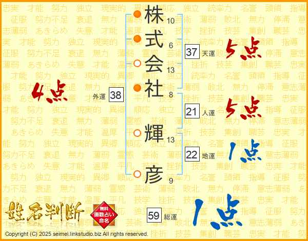 株式会社輝彦さんの総運は59画の1点!