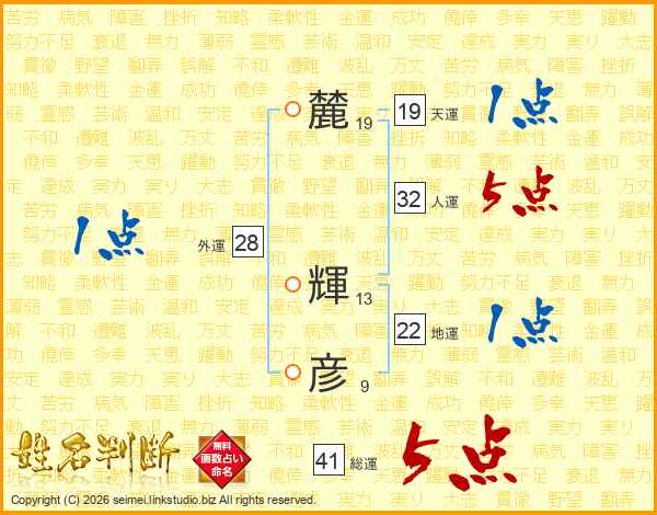 麓(19画) 輝(13画)彦(9画)