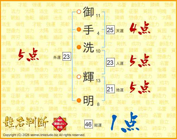 御手洗輝明さんの総運は46画の1点!