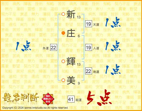 新庄輝美さんの総運は41画の5点!