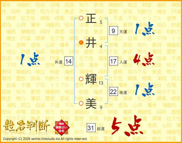 正井輝美さんの総運は31画の5点!