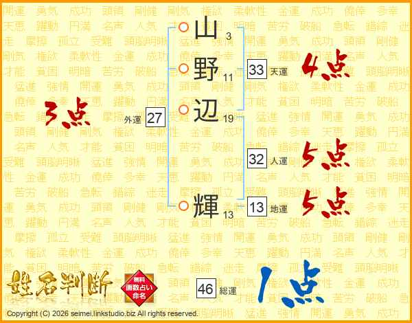 山野辺輝さんの天運は33画の4点!