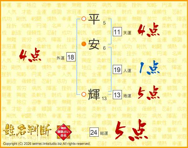 平安輝さんの総運は24画の5点!