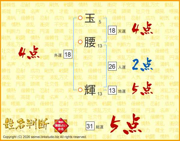 玉腰輝さんの総運は31画の5点!