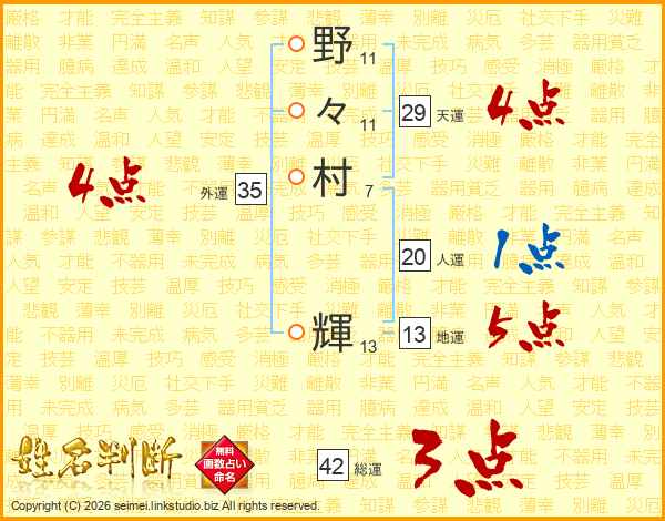 野々村輝さんの外運は35画の4点!