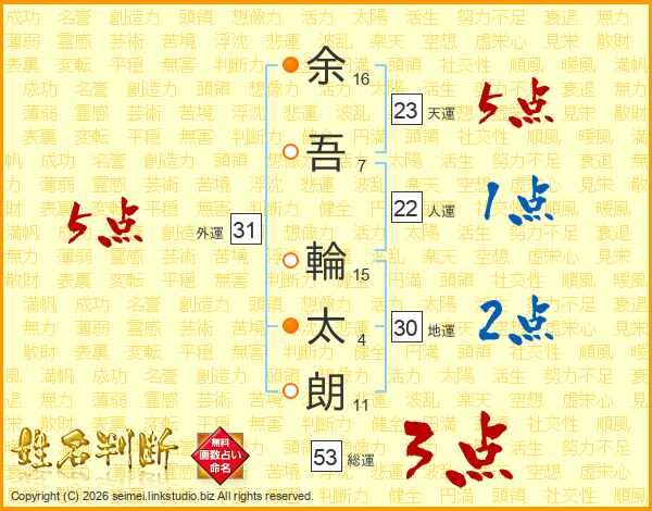 余吾輪太朗さんの天運は23画の5点!