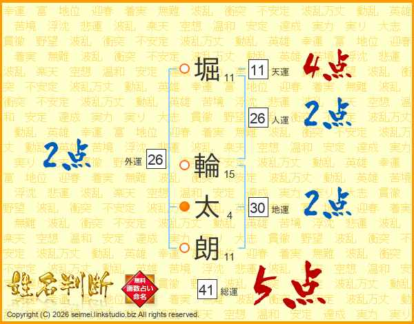 堀輪太朗さんの天運は11画の4点!
