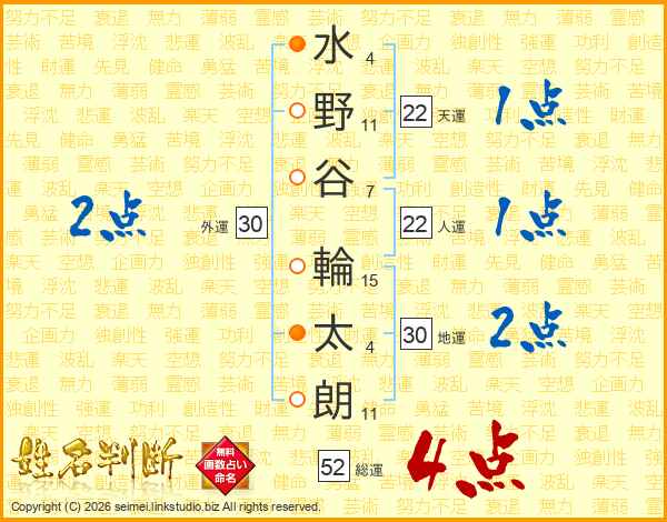 水野谷輪太朗さんの総運は52画の4点!